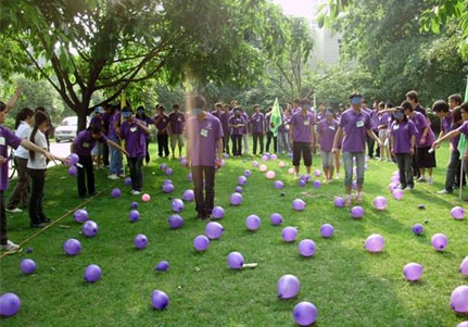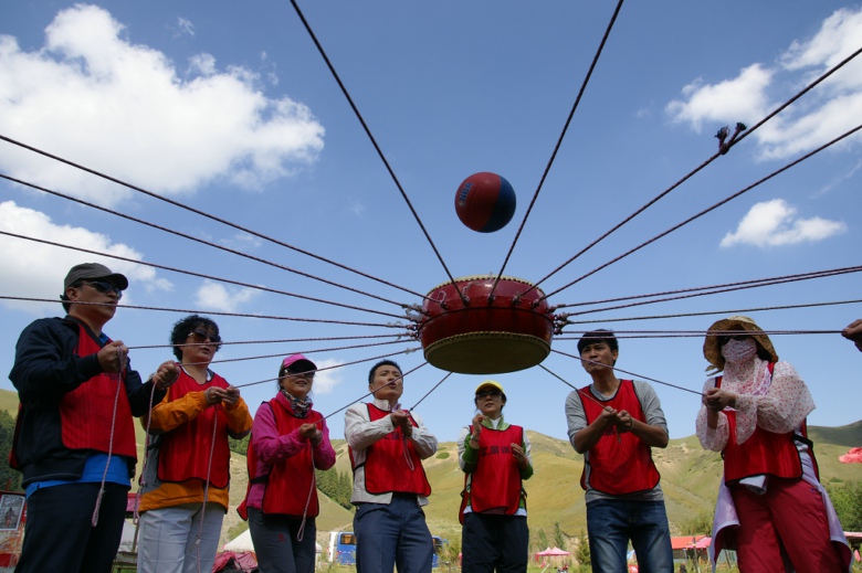云南麗江團(tuán)隊(duì)?wèi)敉馔卣褂?xùn)練團(tuán)建公司—拓展培訓(xùn)方案項(xiàng)目推薦之鼓動(dòng)人心/擊鼓顛球