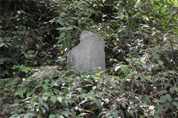 龍?zhí)哆吺种辛⒂幸粩啾恢螘r(shí)何人所立,字跡模糊難考,用石擊之,音脆響回蕩其間,以為奇特。