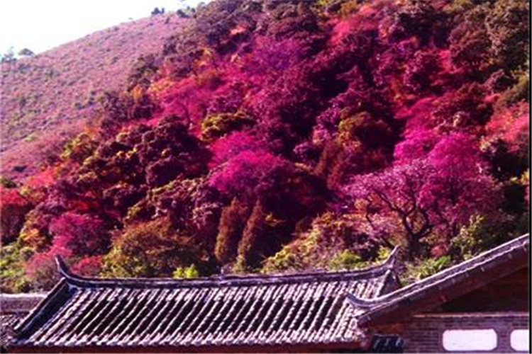 束河聚寶山、龍泉山、蓮花山后多為漆樹(shù),深秋時(shí)節(jié)樹(shù)葉發(fā)紅,成為靚麗的紅葉景觀。麗江先賢周霖老先生詩(shī)云:“龍泉寺下路崎斜,策杖霜林勝看花,火井輝煌觀世運(yùn),衰顏憔悴怯年華?!?