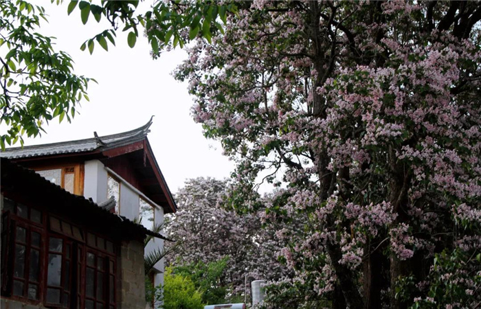 或許是因為麗江本就是一個花多的城市,又或者是因為楸樹挺拔,高的無法讓人近距離觸摸,吉慶路的楸木花并沒有引來過多人的駐足。但當(dāng)你走在楸樹下時,會不禁為它的美停留。