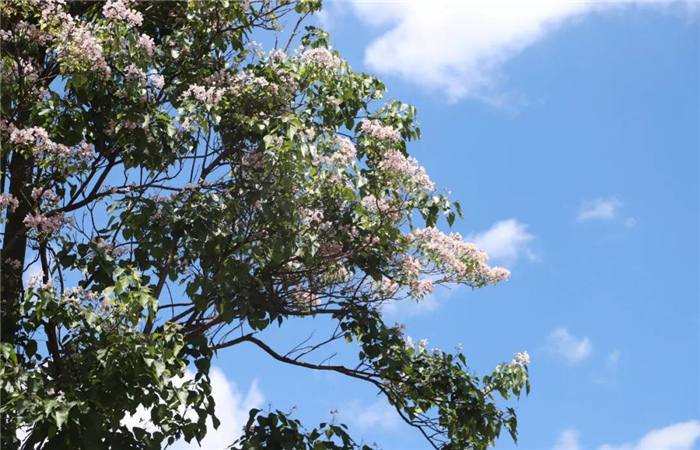 如果,清晨打開窗,就能聞到一樹的芬芳。我想,我會醉倒在每一個清晨里。位于古城區(qū)祥和領(lǐng)域小區(qū)。楸木花開在了住戶們的樓下,近在咫尺的繁花,照亮每一天的初始。