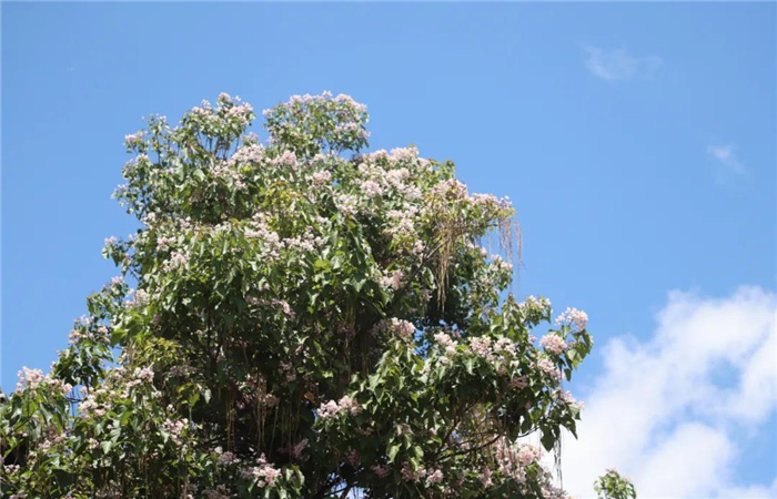 四月,大概是人間最美好的時節(jié),它總是悄悄的從春天的嫩綠里連綴起夏天的繁華。一樹一樹的花開是四月最好的饋贈。你瞧~,楸木花又在人間最美的四月天里如約而至了。