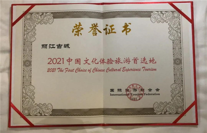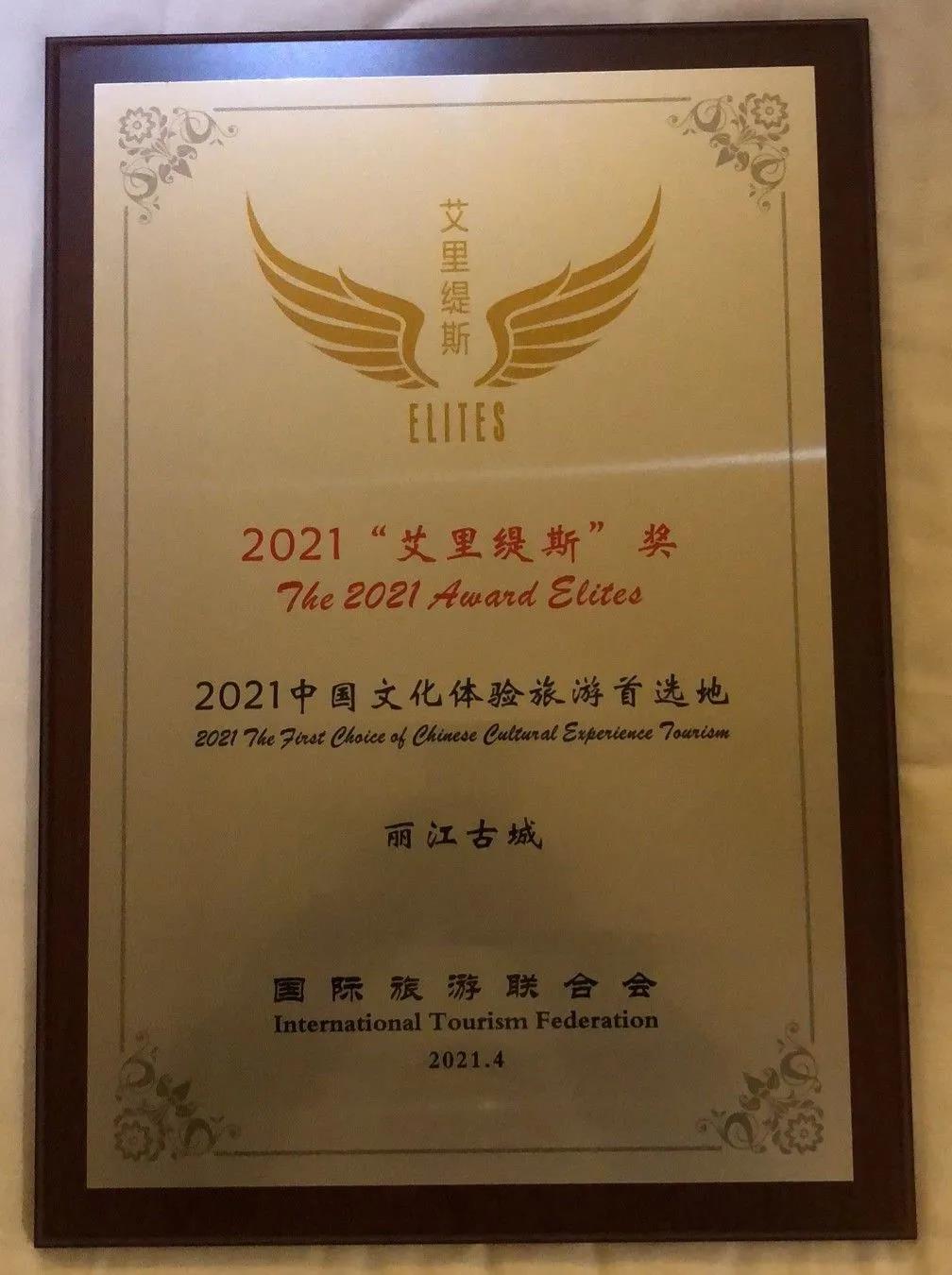 4月24日,在第四屆國際旅游年會上,麗江古城榮獲“艾里緹斯”國際大獎,入選“2021中國文化體驗旅游首選地”。