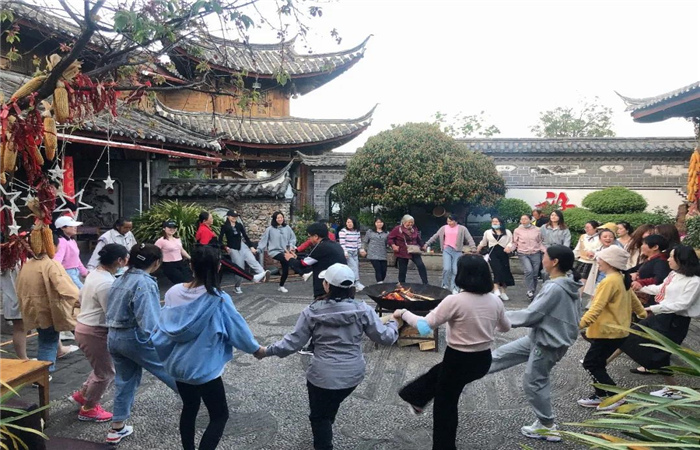 彝族是我國古老的民族之一,彝族人民在長期的歷史進程中,創(chuàng)造了無愧于人類的燦爛文化。大家了解了彝人長街宴的由來,入座長街宴,觀賞彝鄉(xiāng)戀歌,歌舞伴餐,其樂融融。晚餐后,大家情不自禁的在隊伍里載歌載舞,來了場篝火狂歡。