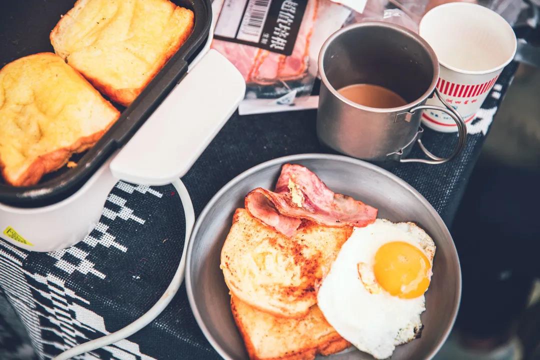 煎到剛剛好雞蛋,蛋白熟了,蛋黃還在是流動(dòng)的液體,再加上培根和烤焦了的面包,真是令人心情愉悅的健康早餐。