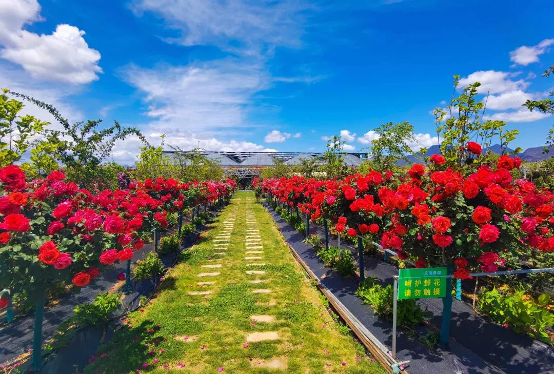 遠遠望去,七河玫瑰小鎮(zhèn)那些五彩斑斕的房子也像是綻放在田地間的各色花朵。當你走近村落,玫瑰花的香味便撲鼻而來,鮮紅的玫瑰花在田間次第開放,連成了大片花海。