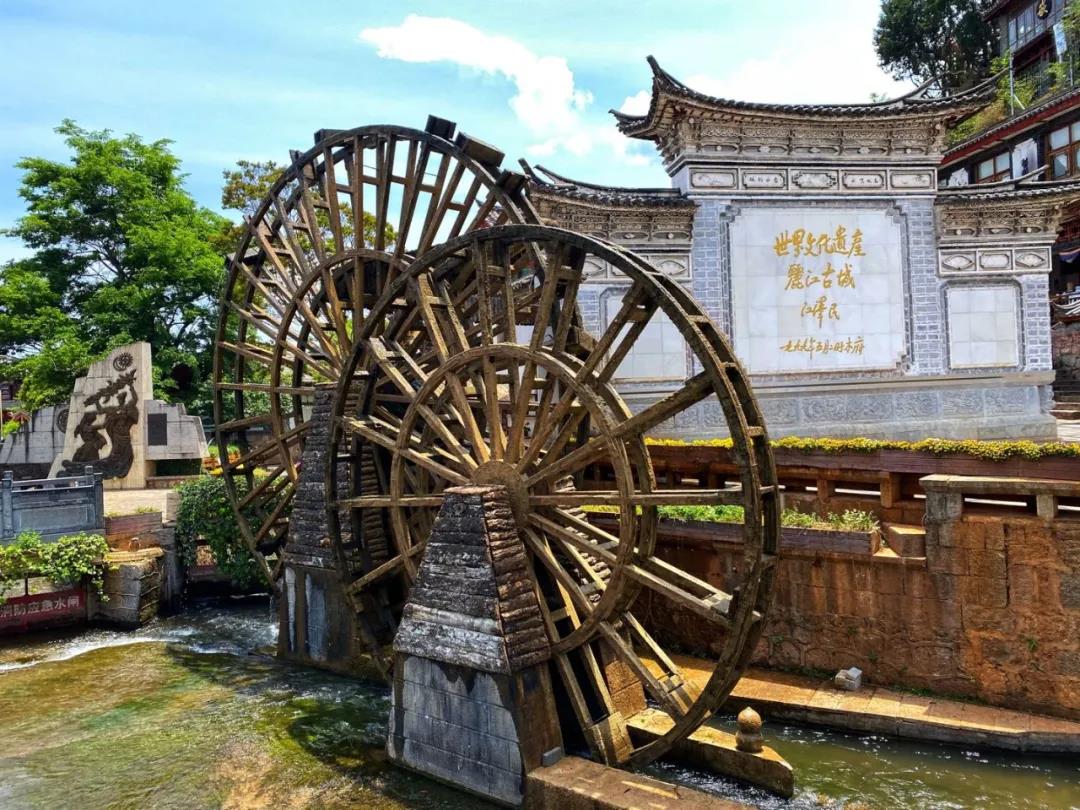 古城口的大水車、許愿林以及世界文化遺產(chǎn)的題字墻,就像是古城最明顯的標(biāo)志一樣,每天有無數(shù)的游人來這里拍照打卡。在這些地方拍照一定要找準(zhǔn)時(shí)機(jī)“穩(wěn)、準(zhǔn)、狠”地?cái)[好動(dòng)作按下快門,不然照片中很容易出現(xiàn)路人的身影。