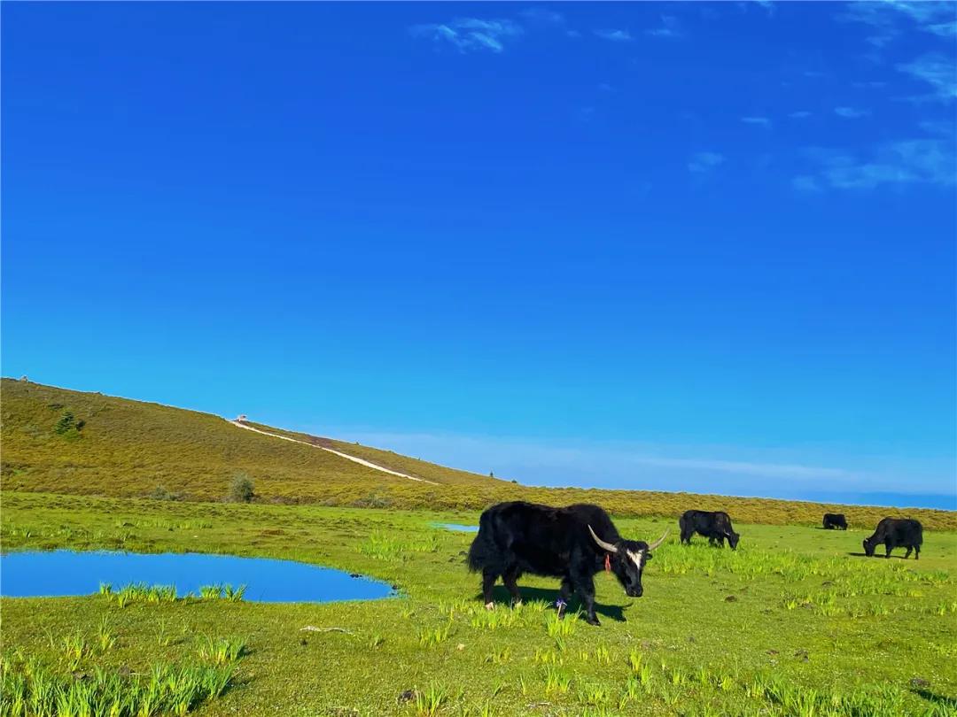 微風拂面,藍天白云,青青草原,清澈湖泊,牛羊成群……在格拉丹,隨處可見美輪美奐的畫卷,在這樣的美景面前,總會感覺照片不及眼睛看到的美。置身于此,把美景盡收眼底,吸收夾雜著泥土、花香、青草香味的空氣,切身感受大自然的神奇與美,你會不禁感慨——“人間值得”。