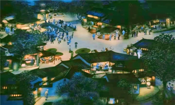 這里有亞洲第一百米納西風(fēng)情數(shù)字長卷,它作為納西創(chuàng)世紀(jì)文化體驗中心鎮(zhèn)館之寶的《納西風(fēng)情圖》,全長100米,高3米,從雪山秘境、桃源白沙、茶馬束河、署古黑龍?zhí)?、鼎盛大研、巍峨木府、大美拉市海七個板塊來進行呈現(xiàn)。