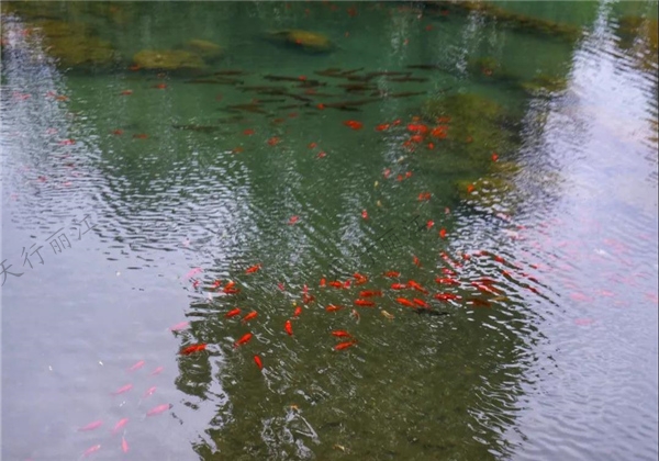 潭中的鯉魚與湖面泛起的漣漪嬉戲,忽有不知名的飛鳥掠過,這一切在這細(xì)雨中都顯得格外生動(dòng)。