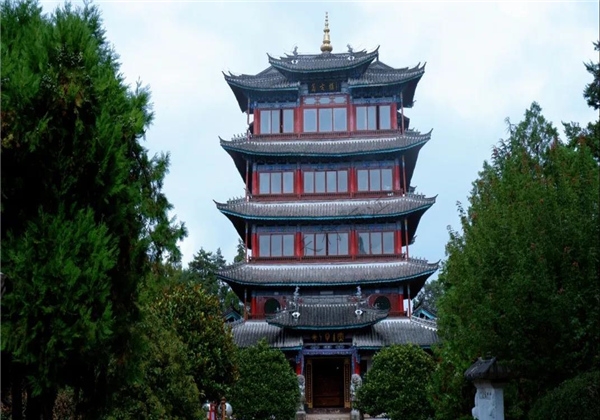 1997年,萬古樓建成,為五層五重全木結構斗拱樓閣式建筑。