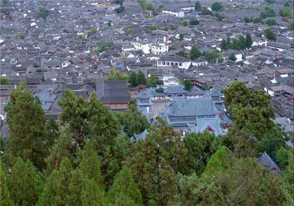 從萬古樓北面望過去,玉龍雪山直擊心底,此時此刻似乎與山同高;西面看過去,官房大酒店、電信大樓、電視塔……這座城市的繁華早早進入了萬古樓的眼界;東面是麗江古城安謐優(yōu)雅的姿態(tài);南面有納西村落的古樸自然,各具神韻。