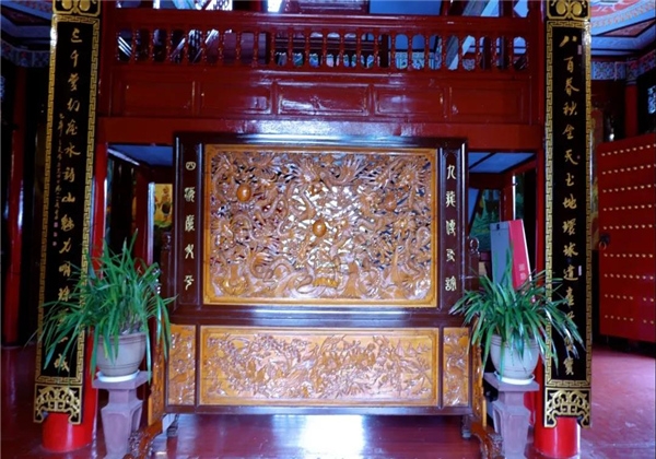 樓頂藻井蟠龍張嘴形態(tài),反映龍能吐水傳說,寓意有水克火消災