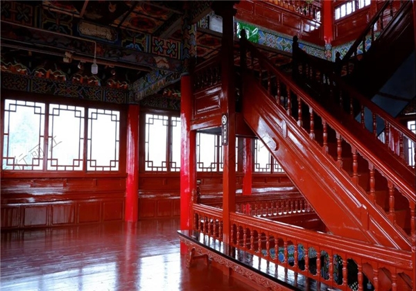 踏入萬古樓內,經不住會感慨它的風采,朱紅色的木質樓梯、顏色紛繁的彩畫、點著光亮的燈籠……仿佛一下穿越到古代。