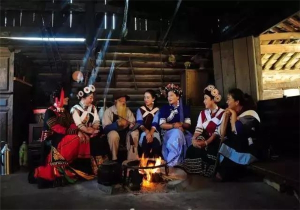 再去聆聽(tīng)一場(chǎng)悠揚(yáng)古老的納西古樂(lè)表演,曲藝悠揚(yáng),倍感憂傷,一唱一和之間,竟已挑動(dòng)情緒,久久不能忘懷。旖旎風(fēng)光,無(wú)限流連千百間,風(fēng)卷云舒,納西族人心中圣潔的玉龍雪山,泊泊流淌出的冰雪之水,融進(jìn)玉水寨中。水生萬(wàn)物,玉水寨的水仿佛具有靈性,那玉水流淌的聲音,也好似音符在跳動(dòng),清悅悠揚(yáng)。偌大的一股泉水順著山坡而下,折成三疊水。人們稱(chēng)第一疊為“出龍瀑”,第二疊為“戲龍瀑”,第三疊為“送龍瀑”,神龍三疊水的美名便得于此。成串的瀑布飛流而下,水汽陰霾,朦朦朧朧的,像是一個(gè)剛剛出浴的仙女捧著紗巾,游魚(yú)嬉鬧在她左右,歡喜跳動(dòng),歡呼雀躍。寨門(mén)口立著尊人身蛇身的金色塑像,是玉水寨的標(biāo)志性建筑,納西語(yǔ)叫“署”,神像背后有兩顆黃葉五角楓,樹(shù)下一眼神泉水,神泉滋養(yǎng)著古樹(shù),古樹(shù)護(hù)衛(wèi)著神泉。這里有納西族傳統(tǒng)家庭院落,錯(cuò)落有致的木楞房,依地勢(shì)而建。面容安詳?shù)睦先酸勚疲瑵M屋子酒味飄香;圍坐火塘邊,聽(tīng)著壺水“咕嚕咕?!钡捻懧?,遙看山水,把酒言歡,滿懷安寧。