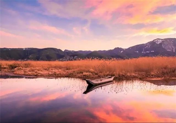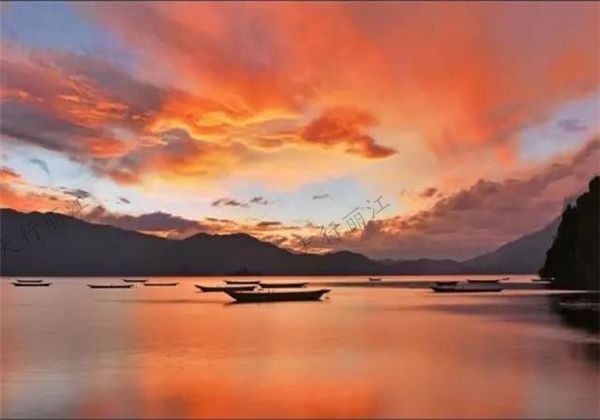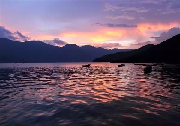 而瀘沽湖的晚霞,是小編有生之年見過最美的晚霞。湖光山色與晚霞接連一片,看著豬槽船蕩漾在湖邊,小編的心也跟著晚霞的消逝而流走。