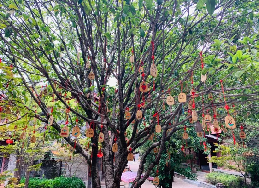 樹上的木牌,不是普通的物件兒,每一個都代表著一顆心,心中的愿望,寄托在了小木牌上,心誠則靈。