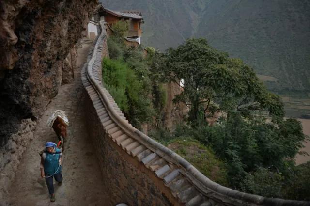 在麗江城北110公里的金沙江峽谷中,有一座百余戶人家聚居的石頭城,建在懸崖上一塊獨立的蘑菇狀巨石之上,三面皆臨懸崖絕壁,一面石坡直插金沙江,是真正的天險之城。