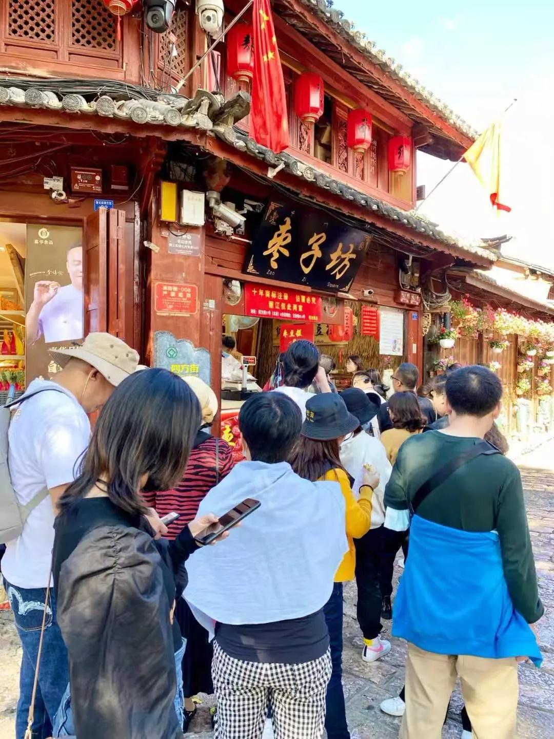 路過四方街,當(dāng)你看到一家小小的店鋪前排著長長的隊(duì)。不用想了,這就是麗江著名的網(wǎng)紅紅棗糕店。這家店鋪每每到中午才開門,一開門,前來購買的本地人、游客馬上就排起了長隊(duì)。