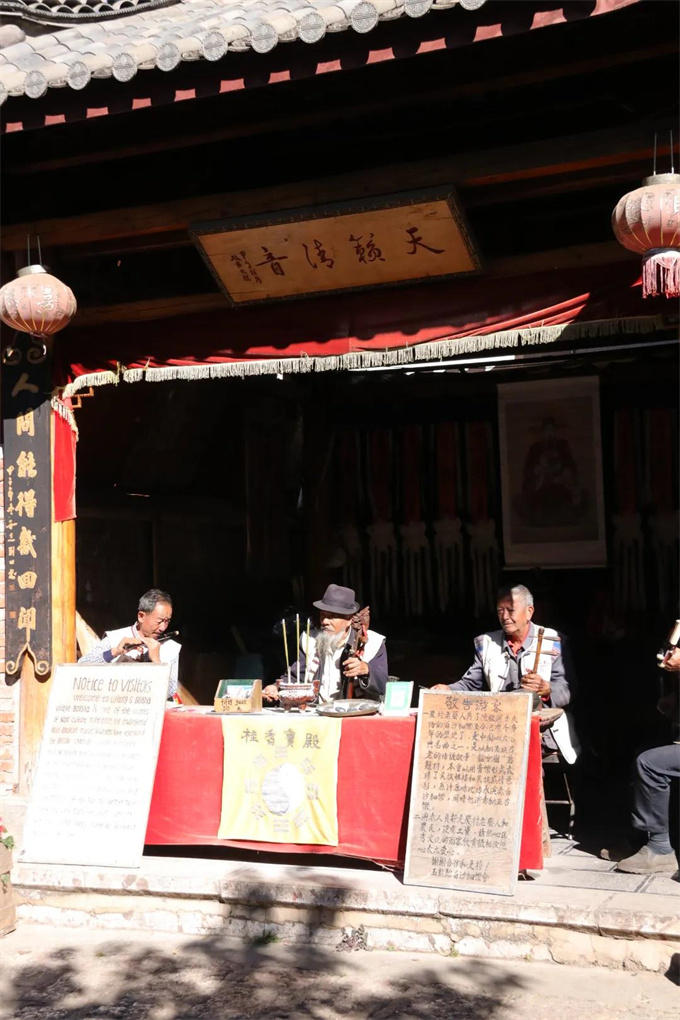 悠悠時光剪不斷吹不散,白沙古鎮(zhèn)算得上是麗江最安靜、最淳樸的地方了,這里的一切都是麗江最初的模樣,凹凸不平的石板路,就是歲月最好的見證者。漫步白沙古鎮(zhèn),街邊的房屋依舊保持著初心,沒有太多被時間改變的痕跡。白沙的時光好像比麗江任何地方都要柔軟和緩慢,在離古鎮(zhèn)入口不遠(yuǎn)處的地方,有一個天籟清音亭,里面有幾位正在演奏“白沙細(xì)樂”的老者,看到有游人經(jīng)過他們都會微笑,招呼大家進(jìn)來聽一聽這來自白沙的天籟之音。