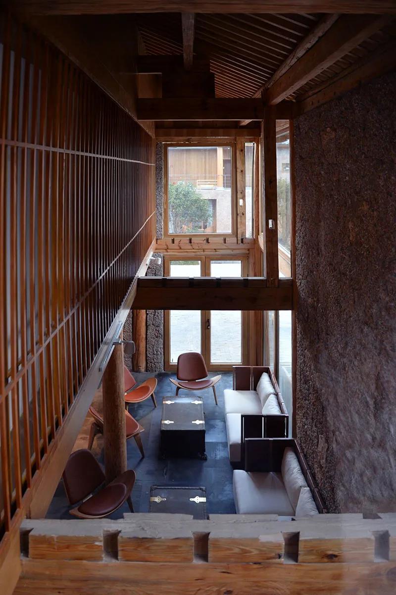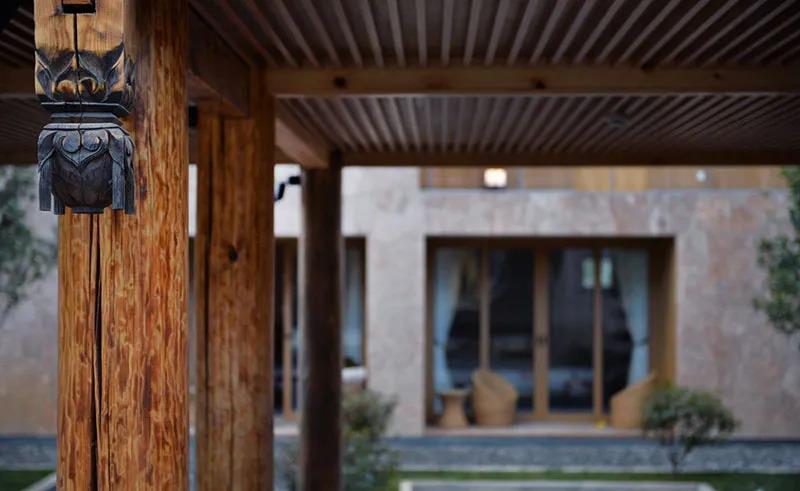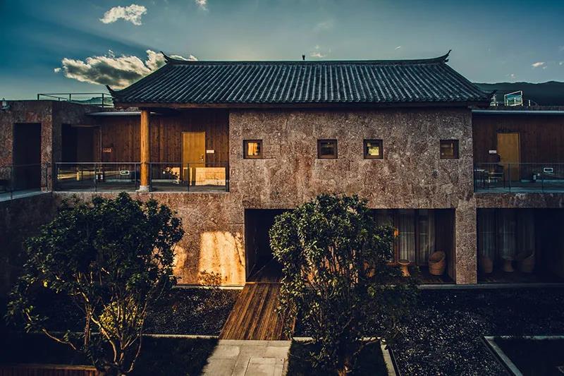 該酒店由日本著名建筑設(shè)計(jì)師堤由匡獨(dú)家打造,利用粗糲的五花石、質(zhì)樸的杉木、古樸的東巴紙進(jìn)行創(chuàng)新設(shè)計(jì)。木造民宅外墻上,堆砌著產(chǎn)自當(dāng)?shù)氐奈寤ㄊA袅思{西建筑的傳統(tǒng)院落式布局,給來(lái)到這里的人們一種別樣居住體驗(yàn),同時(shí)又營(yíng)造出一種“回家”的溫柔之感。