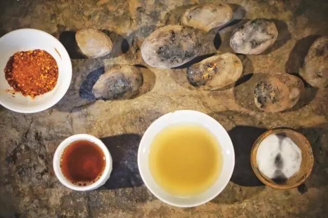 待罐子烘熱,蜂向勇將茶葉取出,放入小陶罐中,“當(dāng)?shù)夭簧a(chǎn)茶葉,所以我們用的是下關(guān)沱茶”。茶葉在陶罐中,經(jīng)文火慢慢煨烤,開始散發(fā)出淡淡的茶香,期間蜂向勇不斷抖動(dòng)陶罐,讓茶葉上下翻滾,以保證茶葉能夠均勻受熱?!翱静杩此坪?jiǎn)單,其中卻有大學(xué)問?!背床璀h(huán)節(jié)要拿捏好分寸,炒太糊,味重,影響口感,炒不到位,茶香不能完全被釋放開來,自小就跟隨祖輩學(xué)習(xí)烤鹽茶,如何烤制出醇香美味的鹽茶,蜂向勇早已了然于胸??静璧耐瑫r(shí),蜂向勇把鹽塊也放到火堆旁烘烤,“傈僳族鹽茶,鹽和茶葉二者缺一不可”。