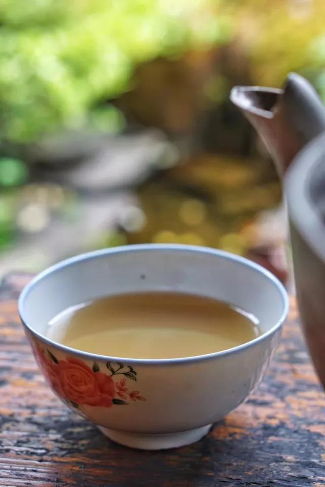 端起茶杯,將茶水緩緩送入口中,首先感受到一些苦澀,再飲一口,細(xì)細(xì)回味,味蕾開始感受到茶湯的醇香甘甜,同時(shí)伴有淡淡的煙味?!斑@里夏季多雨水,茶葉無法曬干,只能放在烤房里烤干,因此有濃濃的煙味?!钡谌谙露?,茶湯中淡淡的糊味搭配上茶葉的醇香,再加入一些鹽巴使得味覺發(fā)生奇妙轉(zhuǎn)換,茶湯變得咸香誘人。