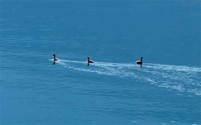 湖面藍(lán)潔清澈,倒影與實(shí)景相映成趣
