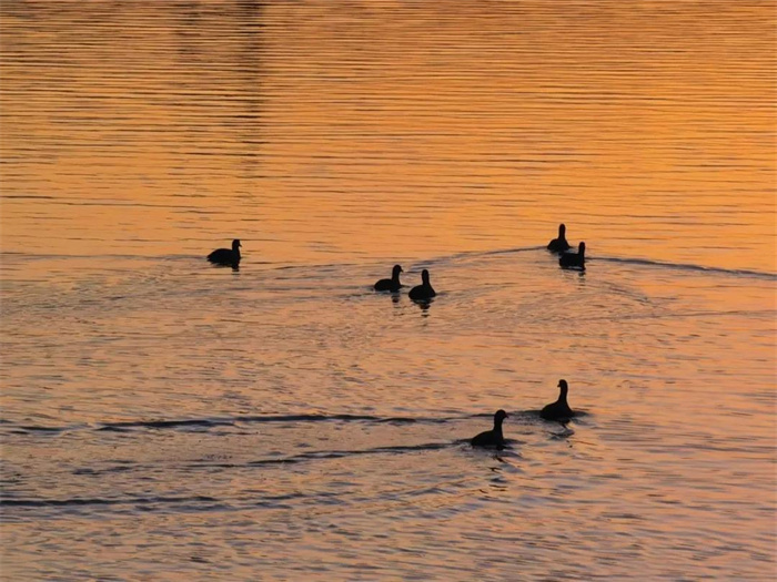 湖里時(shí)不時(shí)地會(huì)見幾條紅色的鯉魚,