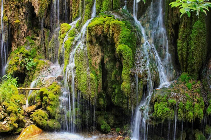 前往七彩瀑布的路上,湍流飛瀑,間雜著喀斯特地貌山體,沿途移步易景美不勝收