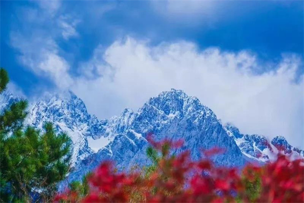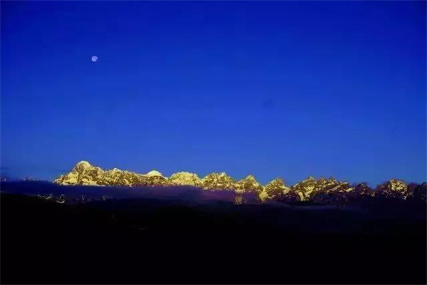 這里,云霧繚繞,青山環(huán)抱,明月映照在雪山頂上。