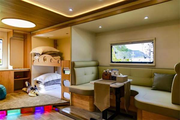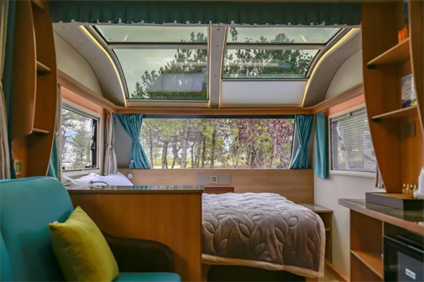 拉近鏡頭,讓我們把目光聚集在房車上,一輛、三輛或五輛房車,格局盡數(shù)不同,可全家同游,亦可來一次浪漫的二人行。