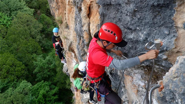 學(xué)完攀巖基礎(chǔ)操作的要領(lǐng)后,一場(chǎng)充滿挑戰(zhàn)的攀巖闖關(guān)之旅就開始啦!整個(gè)攀巖過程,主要是飛拉達(dá)攀巖,另外還設(shè)置了4個(gè)精彩關(guān)卡,增加了整體攀巖過程的趣味性和挑戰(zhàn)性。在這里,我重點(diǎn)聊聊4個(gè)精彩關(guān)卡。