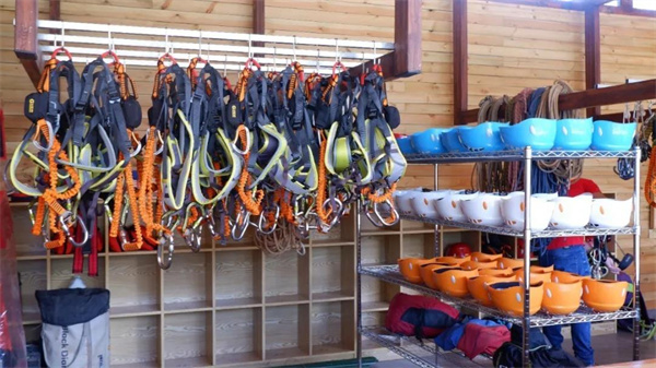 換裝備 → 步行熱身 → 教練教授攀巖技巧和安全知識(shí) → 攀巖(鋼絲橋、云梯、高空吊橋、溜索)→ 卸裝備 → 攀巖結(jié)束到達(dá)東巴探險(xiǎn)中心,根據(jù)教練指導(dǎo),換上攀巖裝備。在教練的指引下,沿著小路走到攀巖起點(diǎn),走路的過程也是基礎(chǔ)熱身的過程。到達(dá)起步地點(diǎn)之后,教練會(huì)對(duì)攀巖者進(jìn)行基礎(chǔ)操作的講解和示范,大概5分鐘。