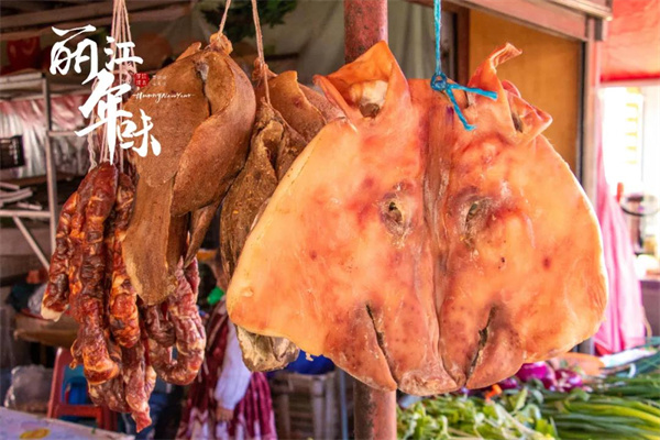 “過年一定要有豬頭和豬尾,一是獻(xiàn)給老祖宗,二是象征一年中有頭有尾,這是對新年美好的憧憬?!?新年不可缺少的豬頭,善食的麗江人早在臘月里就悄悄開始準(zhǔn)備。