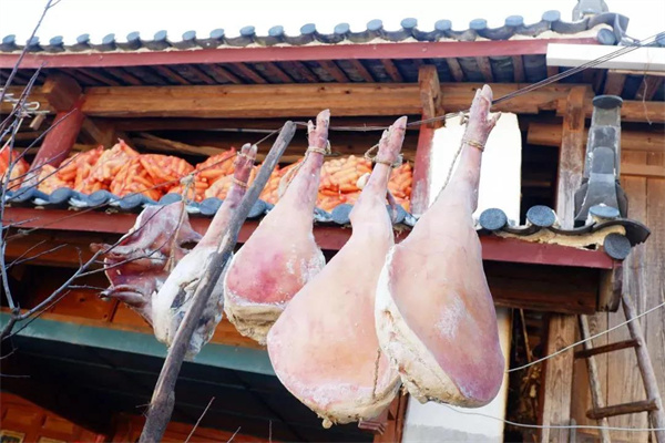 制作臘味是許多地方的傳統(tǒng)習(xí)俗,它是農(nóng)耕時代中國人留住時間的秘密。作為南絲綢之路和茶馬古道的必經(jīng)之路的麗江,許多馬幫熙來攘往,舟車勞頓,尋常食物不易攜帶,且不好保存,用鹽腌制風(fēng)干后的臘肉成了最好的食物。