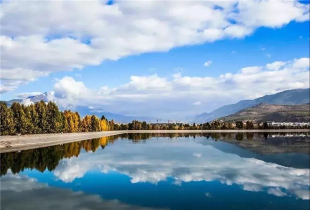 一直朝北走,你會驚喜地發(fā)現(xiàn)還有一個湖泊。此湖是明代以前由木氏土司所修得人工湖,名為玉湖,名字的由來很簡單:因為玉龍山的雪峰和森林倒影在湖中,白雪與森林的綠蔭相互輝映,很像綠白相間的玉。同時,它還是玉龍雪山十二景之一。