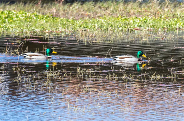 沿著新修建的親水棧道,緩緩走向濕地更深處,兩旁鳥兒的種類和數(shù)量都在逐漸增多。有成群結(jié)隊的野鴨,也有單獨(dú)行動的白鷺。頭頂不時有雁群飛過,悠然天地間。讓人便引詩情到碧霄。