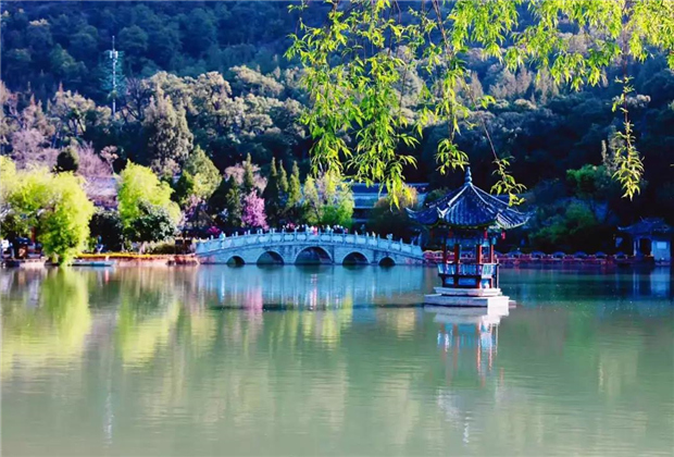 “最生活”的麗江在悠閑寧靜的黑龍?zhí)豆珗@里。