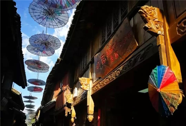 麗江古城內(nèi),多了條網(wǎng)紅街,油紙傘掛滿小巷,給旅人創(chuàng)造了一個(gè)夢(mèng)境。但這些油紙傘,一點(diǎn)也不一般,它是東巴文化的衍生品,用特殊的顏料在傘下畫(huà)下東巴文字,不管風(fēng)吹日曬,油紙傘依舊鮮亮。帶一把油紙傘,可了解東巴象形文字,最有意義。