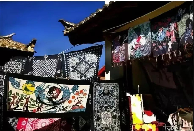 東巴扎染借鑒了白族扎染和苗族蠟染工藝,加入東巴文化的元素,東巴文的象形與民間工藝結(jié)合在一起,使得東巴扎染具有獨(dú)特的審美價(jià)值和裝飾性。帶走一塊東巴扎染,美觀與實(shí)用兼具。