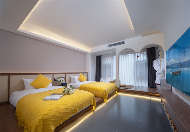 房型特色:所有湖景房均為一線湖景房,均為正面面對瀘沽湖180度無死角的觀湖效果。房間同時正對神秘且威嚴的格姆女神山,每個清晨與傍晚都能看到不一樣的朝與暮,不一樣的火燒云。在晴朗的夜晚可看到美麗絢爛的高原星空,數(shù)不完的星星和連不完的星座。視野開闊,湖景一覽無余,全房地暖,獨立空調(diào),迷你冰箱,高升燒水壺,茶桌茶具及冰島普洱茶體驗包,智能馬桶,電動窗簾,浴缸,高檔床墊,高端布草,一次性馬桶套,一次性浴缸套,高檔一次性洗漱用品,天貓精靈,無線WIFI,一客一換。