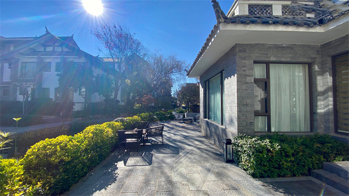 麗江悅云別院以人文院落建筑、麗江本土風(fēng)情和農(nóng)耕文化景觀為基調(diào),擁有84幢精致庭院別墅共計(jì)138間客房,有種江南小家碧玉感的園林風(fēng)格。楊柳拂風(fēng),鮮花盛開,滿園都是美好的景致。酒店種植了很多不一樣的鮮花,有櫻花、玉蘭、桃花等,每個(gè)季節(jié)都有滿園的鮮花盛開。這次在酒店,我竟然還看到了還沒(méi)開敗的玉蘭花。
