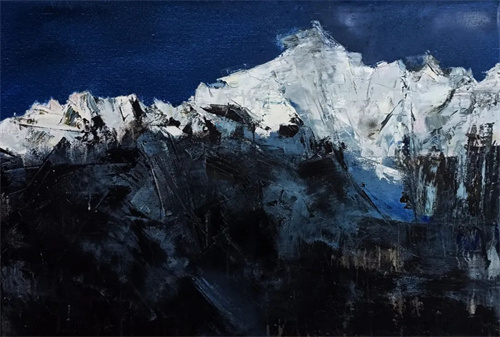 隨著年歲和閱歷漸長,在八九的畫作中,雪山有了別人看不到的一面。躍然于畫布上的是沉淀、是總結、更是對家鄉(xiāng),對祖國大好河山的喜愛之情。