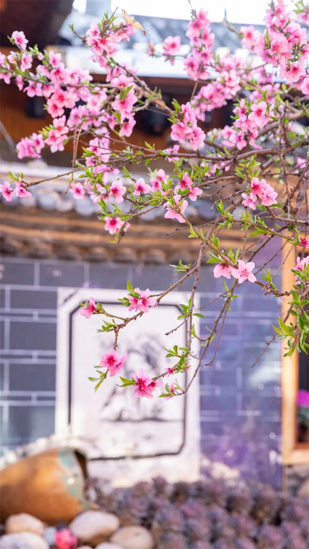 立春過。走進(jìn)麗江古城,滿城的花兒早已撬動起了春色萬千。風(fēng)開始變得輕柔,空氣
