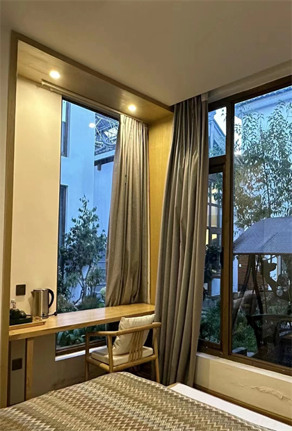 落地窗可以看到花園美景,提供一次性拖鞋,馬桶墊,床品也是老板精挑細(xì)選的純棉制品。