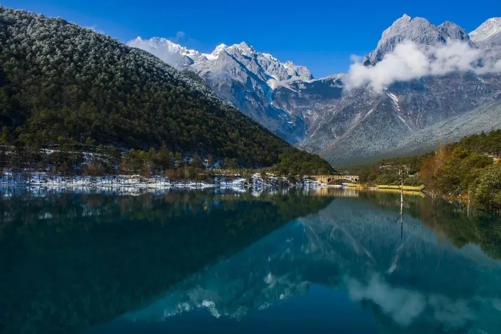 以險(xiǎn)、奇、美、秀著稱的玉龍雪山,任何時(shí)候去都散發(fā)著獨(dú)特的魅力。冬季的玉龍雪山,更是銀裝素裹,隨著時(shí)令和天氣的變化,有時(shí)云蒸霞蔚,玉龍時(shí)隱時(shí)現(xiàn);有時(shí)碧空如水,群峰晶瑩耀眼;有時(shí)云帶束腰,云中雪峰皎潔。站在4680米的雪山之上,云從眼前飄過,整個(gè)人飄飄然如臨仙境,仿佛伸一伸手,就能夠到藍(lán)天。