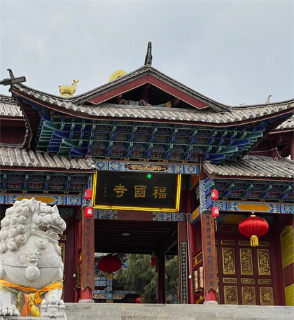 “福國寺”位于玉龍雪山南麓橫嶺巖腳村后的芝山腹地,距麗江古城(大研古鎮(zhèn))約13公里,藏名為“奧米南珠林”,意為“密嚴解脫苑”,據(jù)說其藏名相傳為都松欽巴的第九個化身十世噶瑪巴大寶法王卻英多杰所賜,漢語即為“解脫林”。 “福國寺”原有主寺五大院,分別為主殿法云閣(又名五鳳樓)、門樓解脫林、兩座護法院和一座活佛院。另有僧房24院,最興盛的時期有住寺僧約200人,年收地租1000余石。