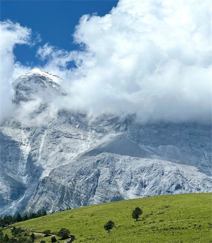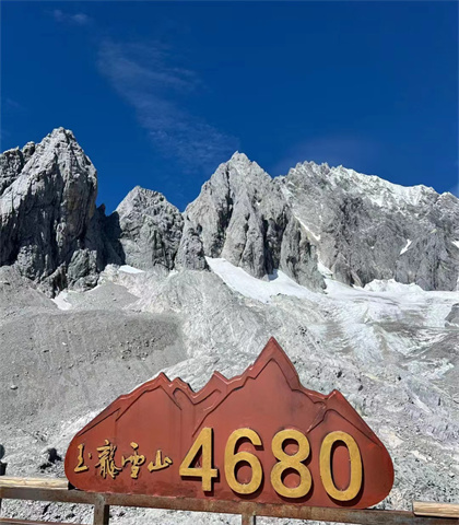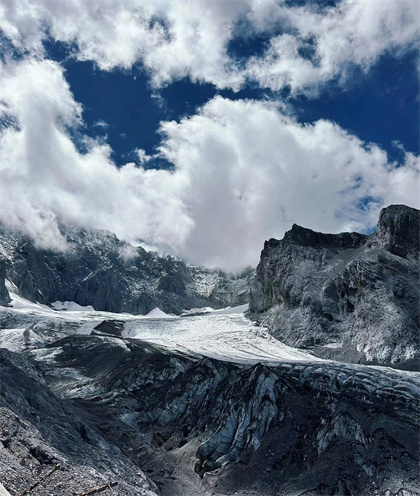 玉龍雪山,位于云南省麗江市玉龍納西族自治縣境內(nèi),主峰扇子陡海拔5596米,這里的高山雪域風景位于海拔4000米以上,擁有險、奇、美、秀的景色。在納西語中被稱為“歐魯”,意為銀色的山巖。其銀裝素裹,十三座雪峰連綿不絕,宛若一條“巨龍”騰越飛舞,故稱為“玉龍”。又因其巖性主要為石灰?guī)r與玄武巖,黑白分明,所以又稱為“黑白雪山”。是納西人的神山,傳說納西族保護神“三朵”的化身。