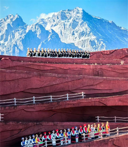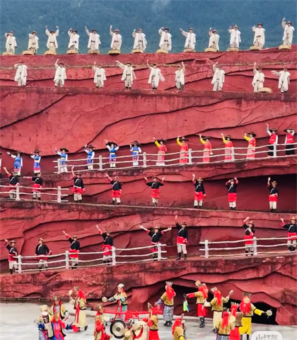 印象麗江劇場位于海拔3100米的玉龍雪山甘海子,以玉龍雪山的雄峰為天然背景。印象麗江是由導(dǎo)演張藝謀、王潮歌、樊躍共同執(zhí)導(dǎo)的原生態(tài)白天實景演出節(jié)目,全劇共分為“古道馬幫”、“對酒雪山”、“天上人間”、“打跳組歌”、“鼓舞祭天”和“祈福儀式”六個部分。